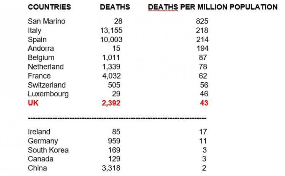 The first one throws up a strange result with San Marino (28 deaths and a DPMP reading of 825) heading the list. Second-placed Italy (218 DPMP) and Spain (214) are then joined by Andorra which has only recorded 15 deaths in total but a death per million population reading of 194.